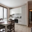 Composto di living in soggiorno con angolo cottura e divano letto singolo, camera matrimoniale, bagno completo e ampio balcone.